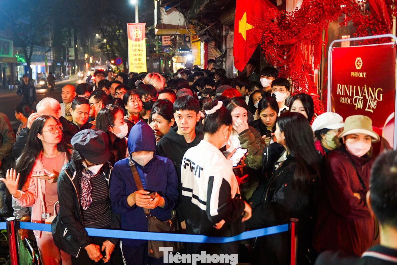 Người dân xếp hàng nửa đêm chờ mua bạc ngày Vía Thần tài (ảnh: Đức Nguyễn).