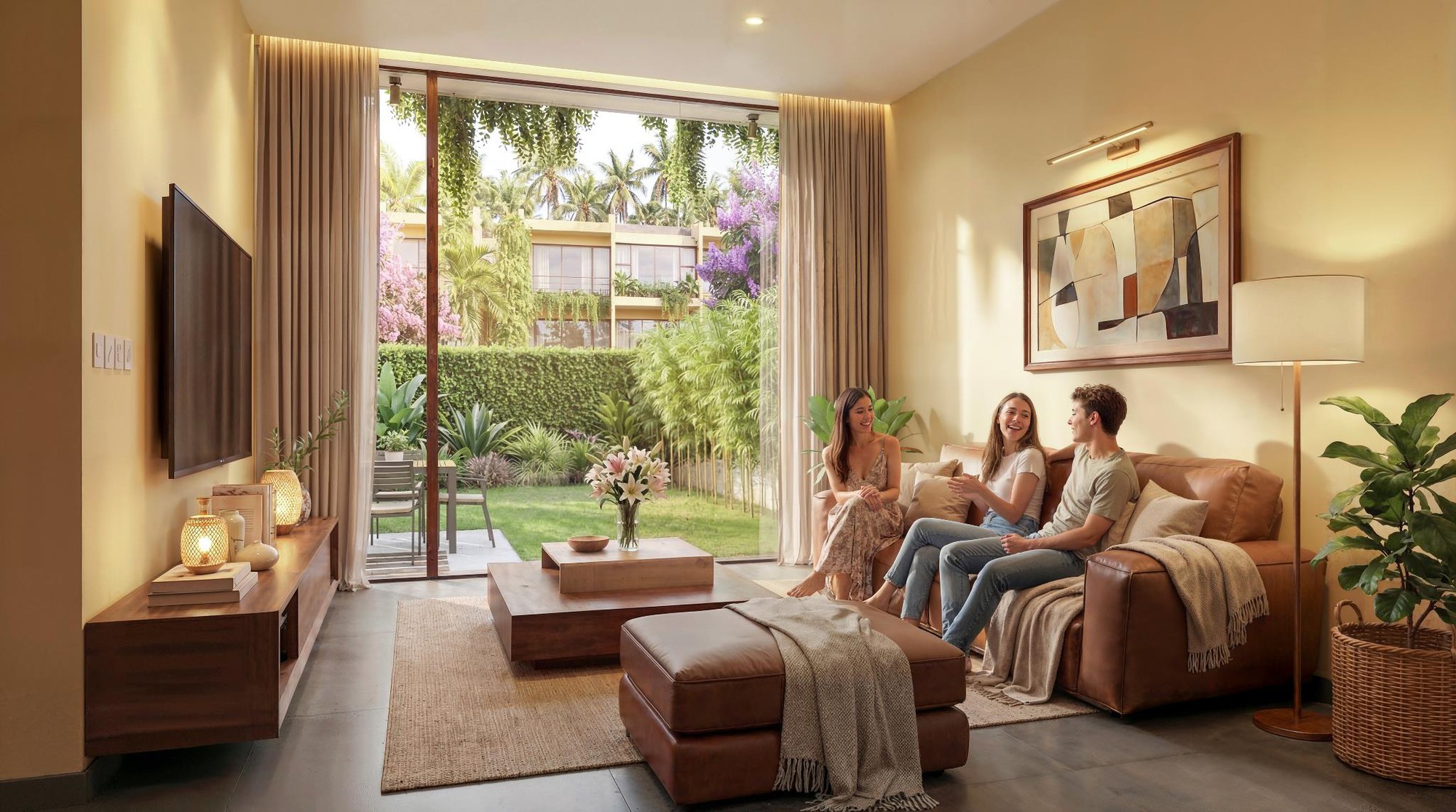 Không chỉ giữ lại 3,6ha rừng dừa nước tự nhiên, dự án còn dành phần lớn diện tích để xây dựng hồ trung tâm, hệ thống kênh nước, thảm thực vật cùng công viên hoa giấy khổng lồ... Cộng hưởng với không gian sống sinh thái là hệ tiện ích đồng bộ, phục vụ nhu cầu thực như: quảng trường, club house, bể bơi tiêu chuẩn Olympic, trung tâm thương mại... cùng dòng sản phẩm bàn giao hoàn thiện nội thất và đơn vị quản lý chuyên nghiệp.