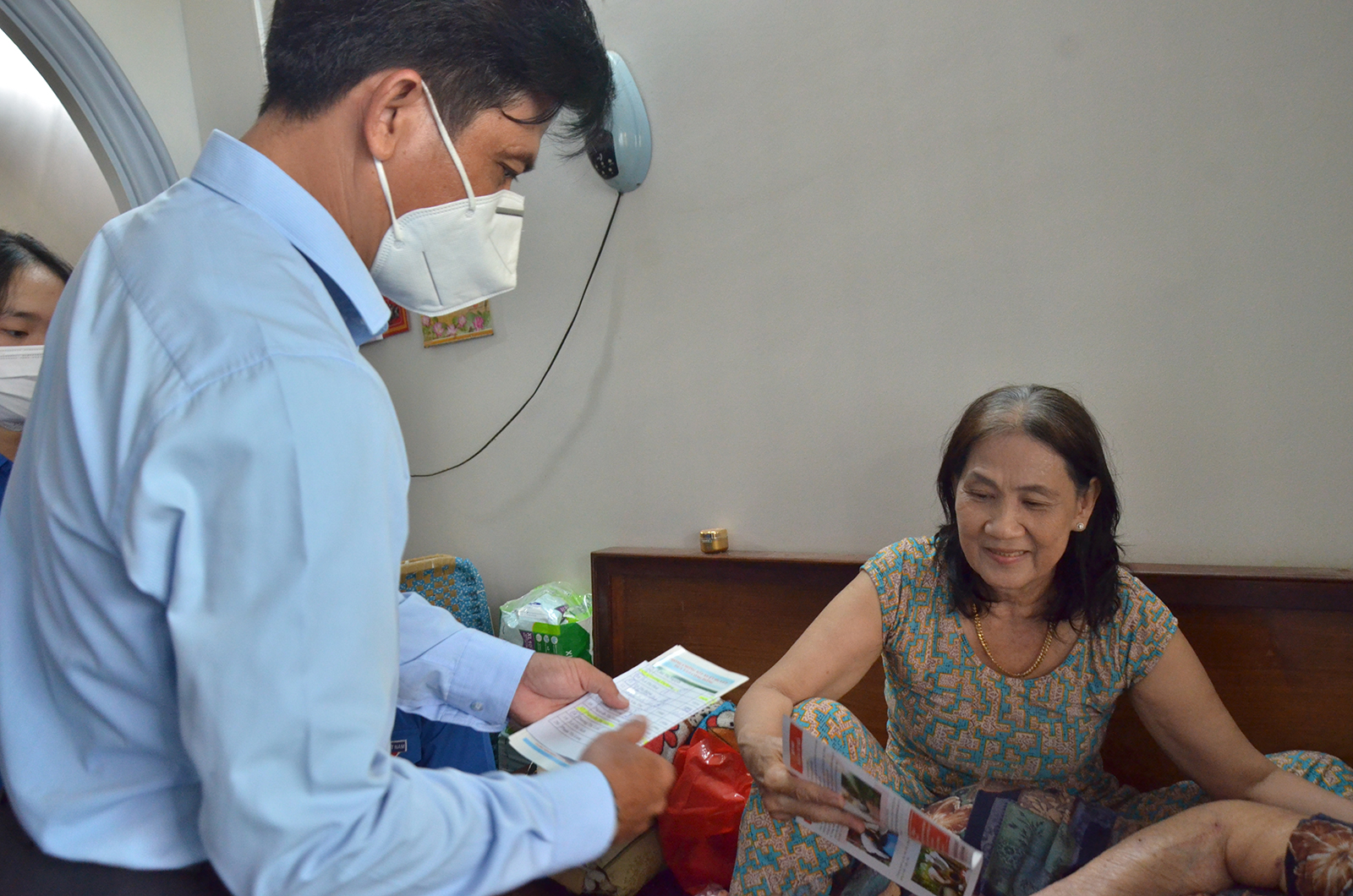 Trạm Y tế Vĩnh Thanh Vân phát tờ rơi tuyên truyền phòng, chống bệnh sốt xuất huyết cho người dân - Ảnh: baoangiang
