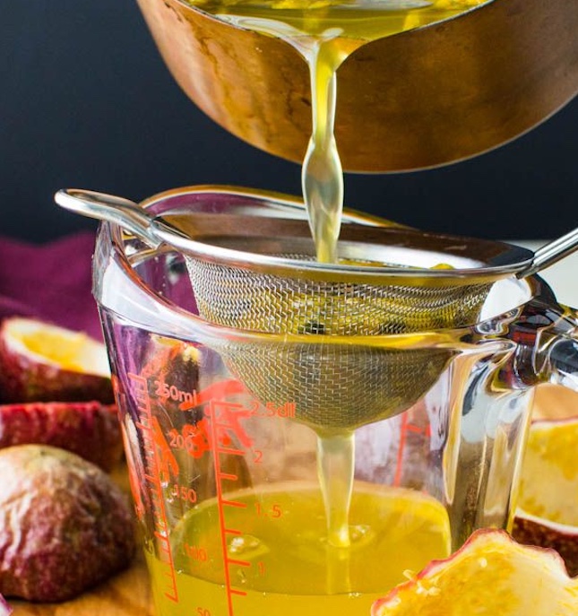 - Cách làm nước chanh leo: Cắt đôi quả chanh leo đã chín, dùng thìa hoặc bất cứ dụng cụ nào có thể lấy được phần ruột - lưu ý là không lấy phần ruột trắng và vỏ. Sau đó, tùy theo sở thích mà bạn có thể lọc hạt hoặc để cả phần ruột chứa hạt để pha với nước. Có thể thêm một chút đường hoặc mật ong, đá viên hoặc ướp lạnh để tăng hương vị, giảm vị chua, tăng hiệu quả giải khát.
