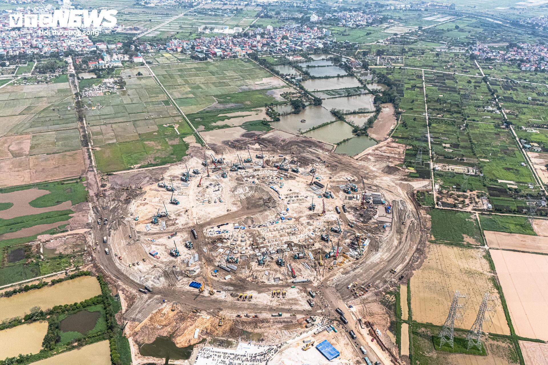 Theo ghi nhận của phóng viên báo điện tử VTC News trong những ngày giữa tháng 3, khu vực triển khai dự án đã hình thành một đại công trường với mật độ thi công cao. Hàng loạt máy xúc, máy ủi hoạt động liên tục, trong khi xe tải trọng lớn ra vào tấp nập để vận chuyển đất đá. Tại nhiều vị trí, các hạng mục đào đắp, hạ cốt nền và san lấp mặt bằng đang được triển khai đồng loạt.
