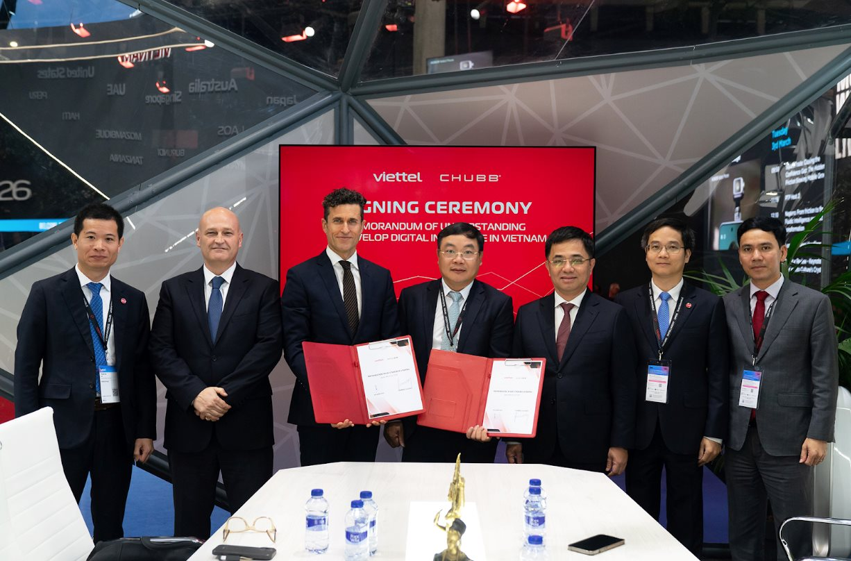 Tại Barcelona, Tây Ban Nha, ngày 03/03/2026 - Trong khuôn khổ Hội nghị Di động Thế giới MWC 2026, Tổng Công ty Dịch vụ số Viettel (Viettel Digital) – thành viên của Tập đoàn Công nghiệp - Viễn thông Quân đội (Viettel) – đã ký kết thỏa thuận hợp tác với Chubb, Tập đoàn bảo hiểm hàng đầu thế giới, hoạt động tại 54 quốc gia.