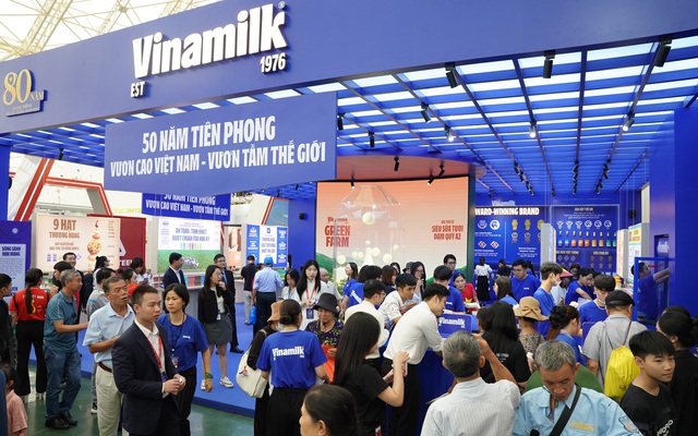 Nổi bật giữa không gian triển lãm quy mô toàn quốc. Gian hàng Vinamilk thu hút người xem nhờ sắc xanh rực rỡ đặc trưng, thiết kế hiện đại và chuỗi hoạt động tương tác hấp dẫn. Với thông điệp "Vinamilk 50 năm tiên phong Vươn cao Việt Nam – Vươn tầm thế giới".