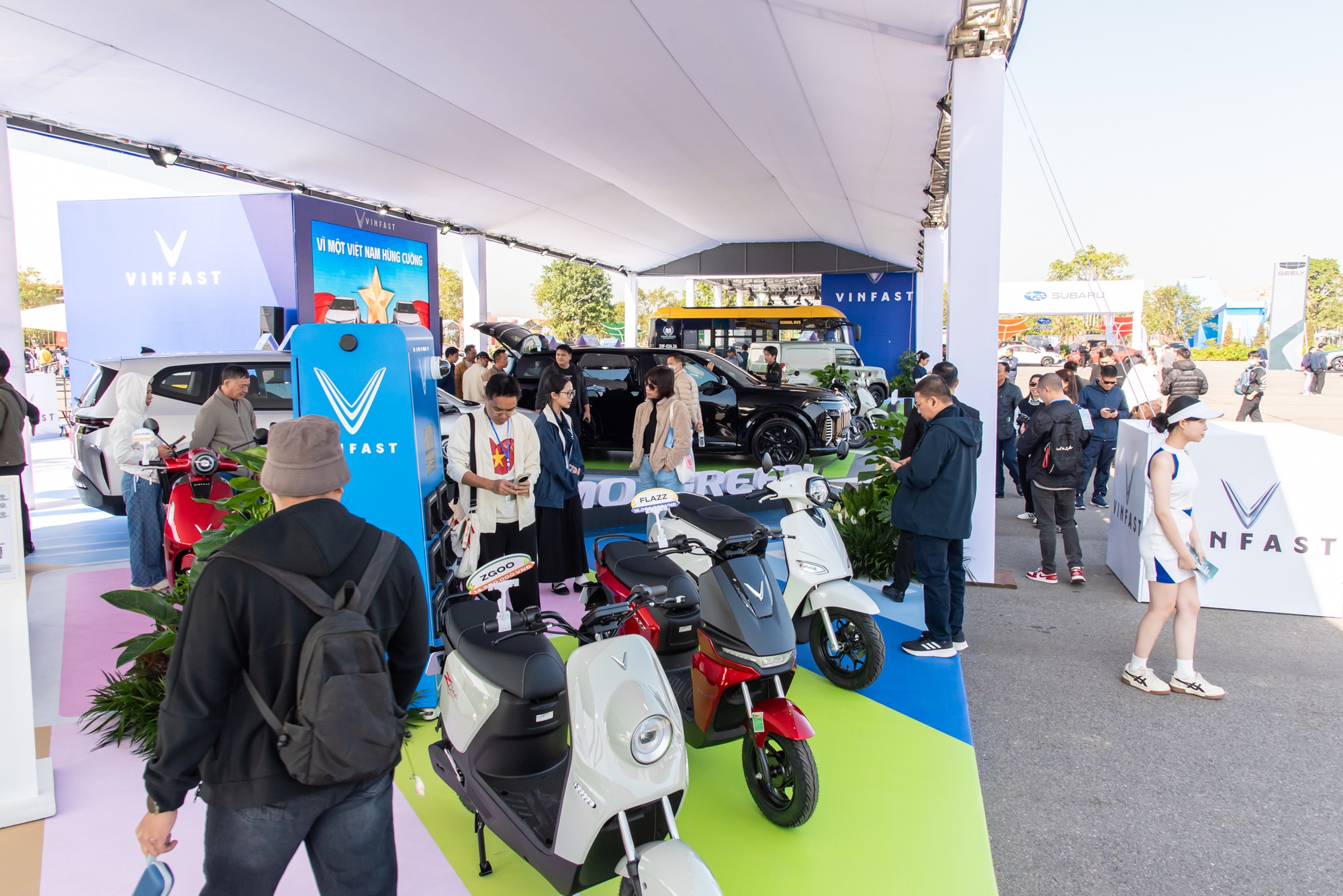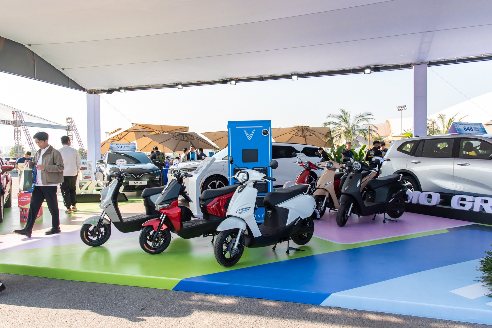Bên cạnh ô tô, khu vực xe máy điện gồm 12 chiếc gồm các mẫu như Flazz, Zgoo, Feliz S, Evo Grand, Vento S và Theon S, phục vụ nhiều nhóm người dùng khác nhau từ học sinh, sinh viên đến người đi làm và người lớn tuổi.