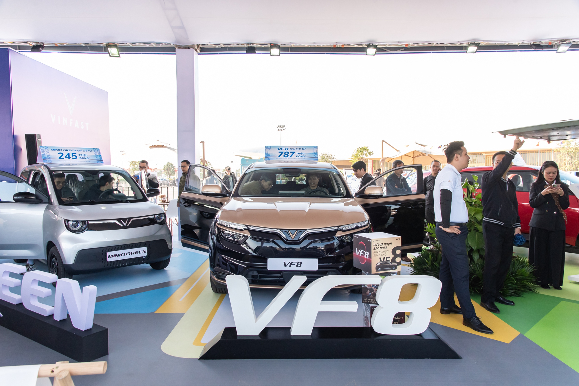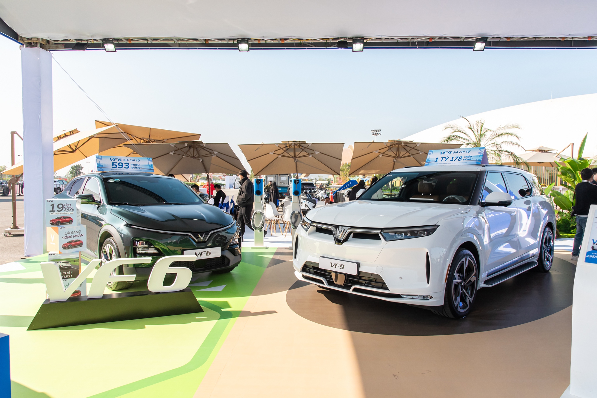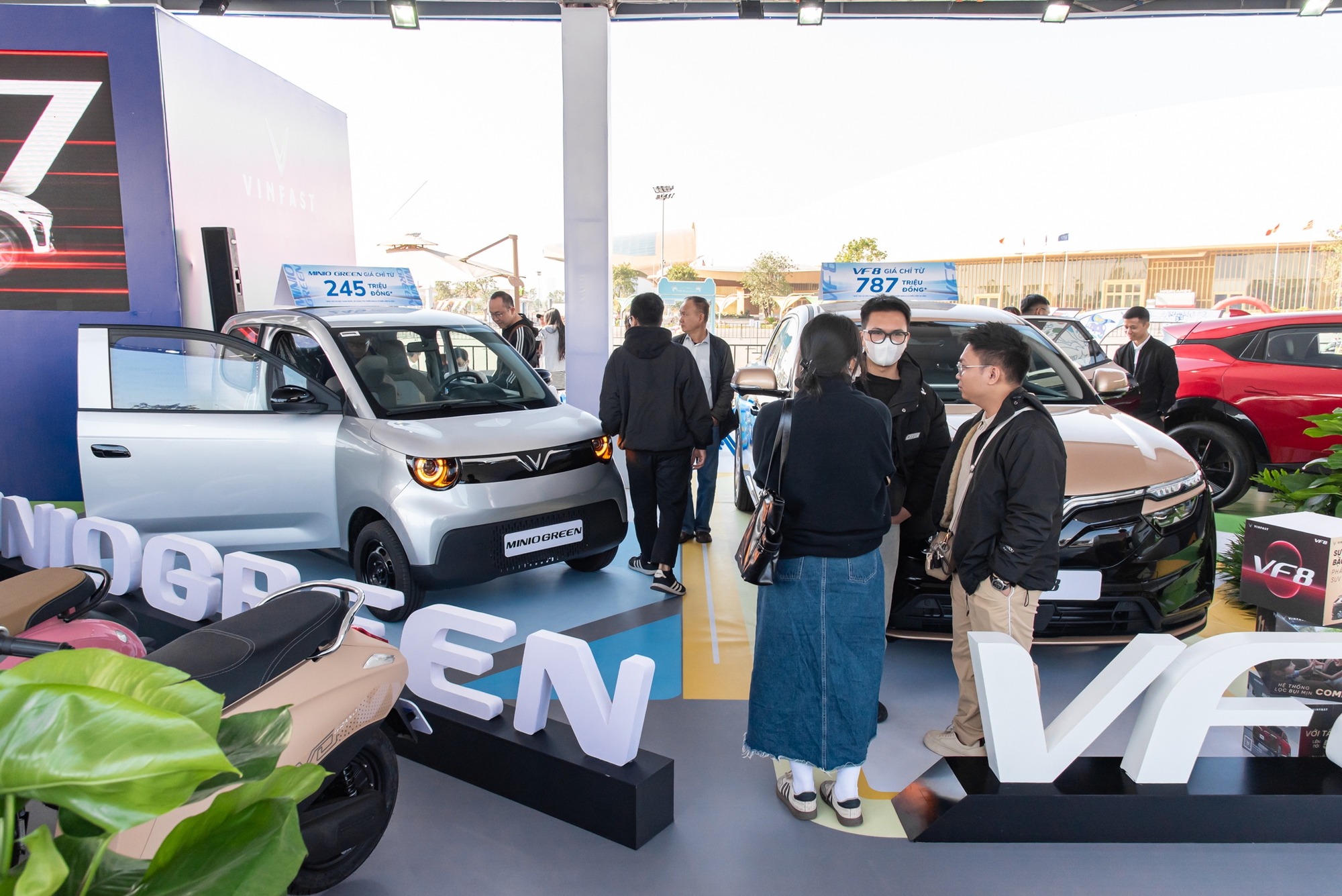 Ở mảng ô tô, VinFast trưng bày tới 10 mẫu xe khác nhau. Các mẫu xe cá nhân như VF 3, VF 5, VF 6, VF 7, VF 8 và VF 9. Bên cạnh đó là nhóm xe phục vụ kinh doanh, dịch vụ gồm Minio Green, Limo Green và EC Van. Ngoài ra, khu trưng bày còn xuất hiện mẫu Lạc Hồng 900 LX được định vị ở phân khúc siêu sang và một mẫu xe buýt điện VinBus.