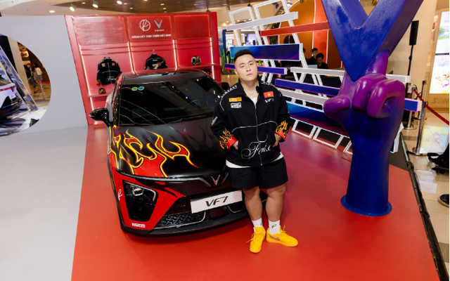 Chiếc xe của anh Fabo còn được cá nhân hóa với bộ tem lấy cảm hứng từ xe đua NASCAR, kết hợp với họa tiết rồng Việt Nam, biến chiếc VF 7 thành một tác phẩm nghệ thuật di động, thể hiện cá tính riêng của chủ nhân. Con trai anh cũng "mê mẩn" đến mức đòi đi học bằng VF 7 mỗi ngày.