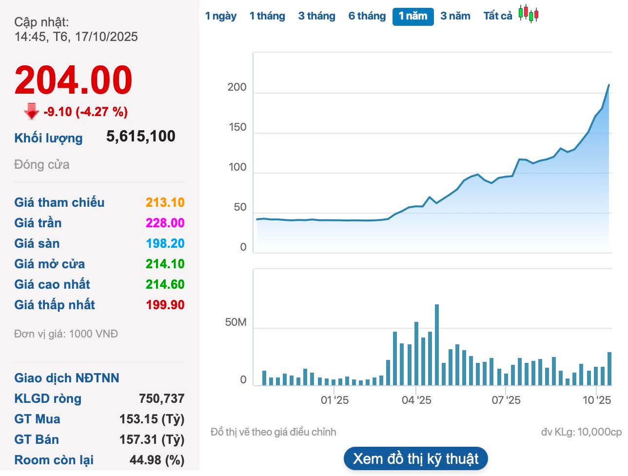 Trong một diễn biến khác, Vingroup mới đây đã thông báo sẽ thực hiện lấy ý kiến cổ đông bằng văn bản về việc phát hành cổ phiếu để tăng vốn cổ phần từ nguồn vốn chủ sở hữu và các vấn đề khác thuộc thẩm quyền (nếu có). Ngày đăng ký cuối cùng là ngày 30/10/2025, thời gian thực hiện lấy ý kiến cổ đông dự kiến trong tháng 11/2025.