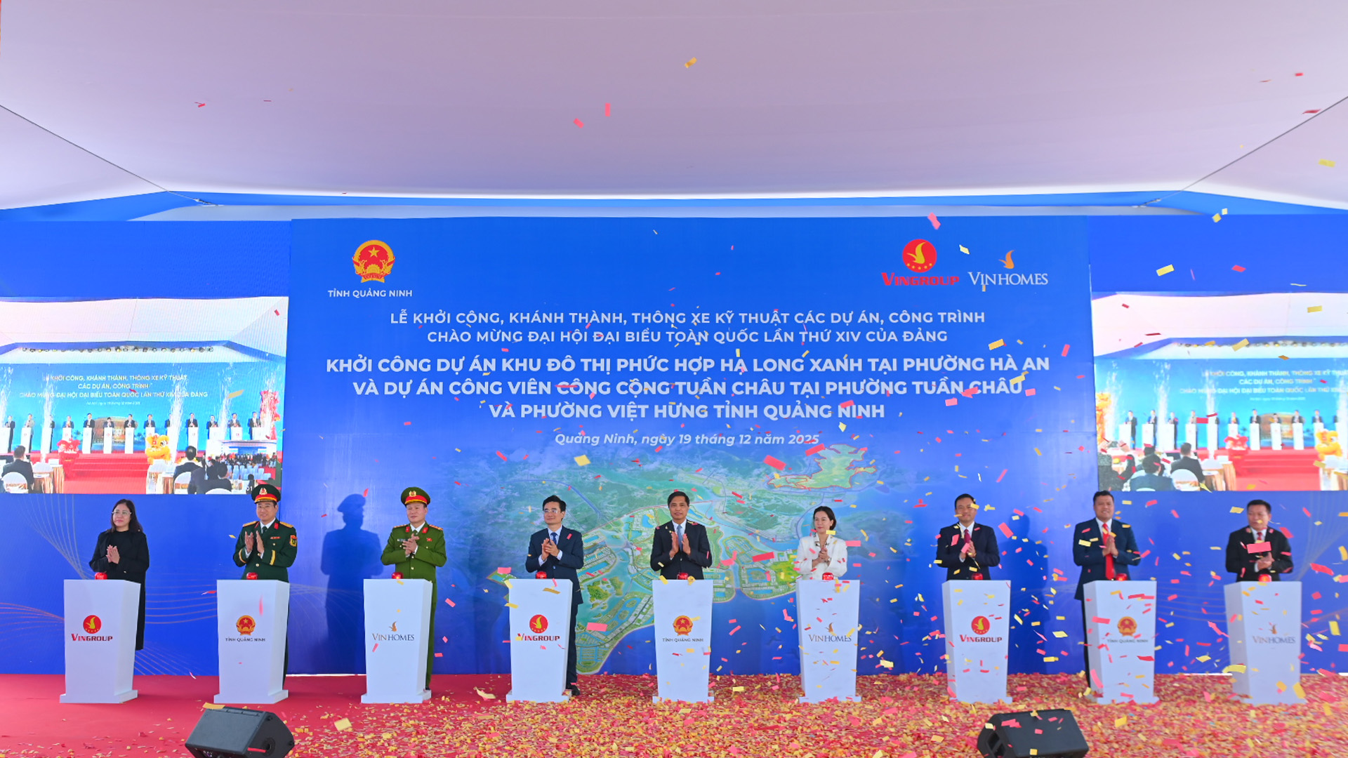 Vingroup ngày 19/12 cũng đã khởi công Khu đô thị phức hợp Hạ Long Xanh tại Quảng Ninh với tổng diện tích hơn 4.100 hecta, bao gồm gần 1.000 hecta tại phường Tuần Châu và hơn 3.100 hecta tại phường Hà An. Tổng vốn đầu tư dự án đạt 456.639 tỷ đồng (gần 18 tỷ USD).
