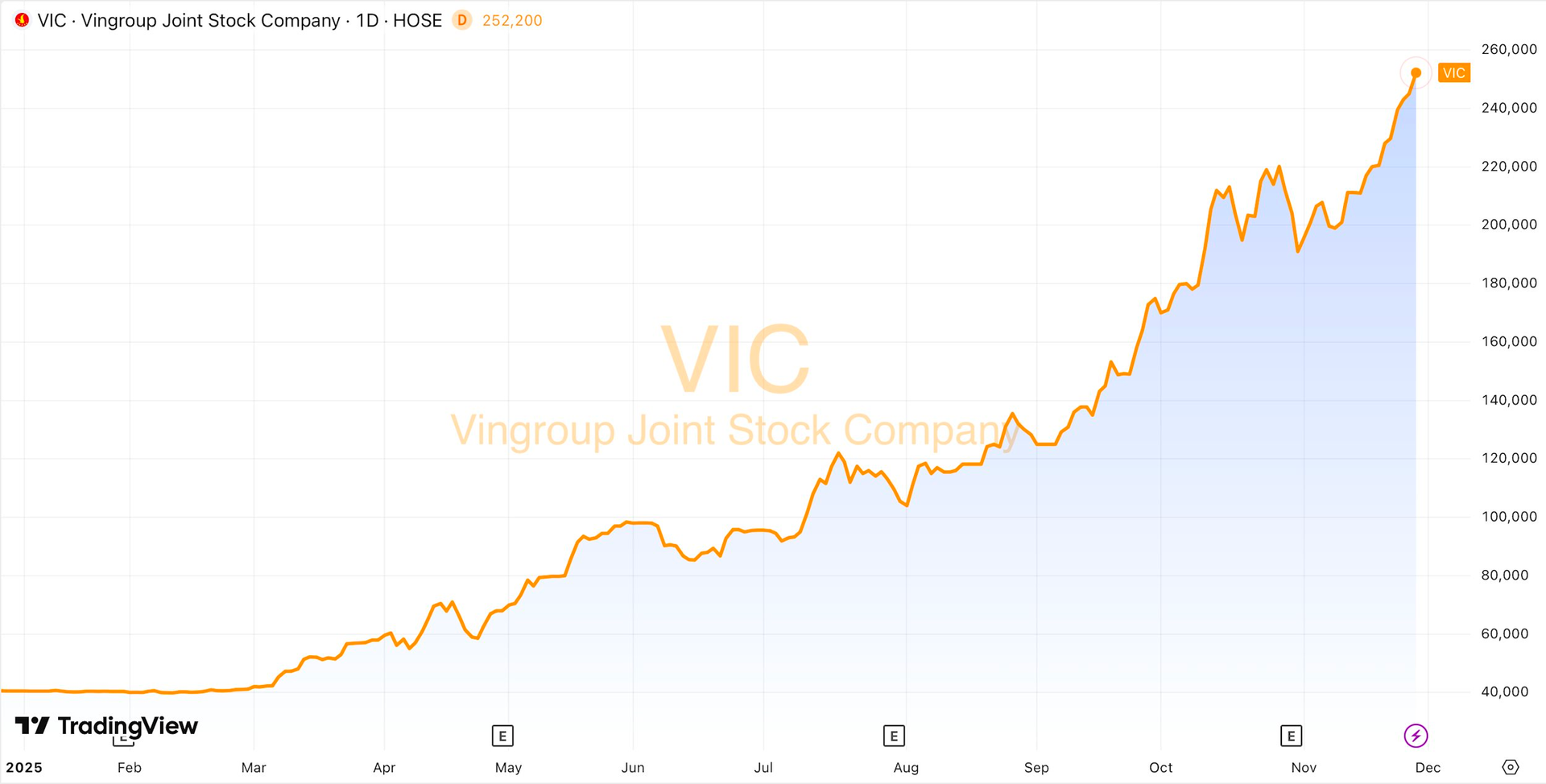Cổ phiếu Vingroup bốc đầu trong bối cảnh hàng loạt dự án trong nhiều lĩnh vực của tập đoàn đang được tích cực triển khai trên khắp cả nước. Trong đó, VinSpeed – đơn vị đề xuất tham gia siêu dự án Đường sắt cao tốc Bắc Nam (60 tỷ USD), cũng đang trong quá trình nghiên cứu đầu tư tuyến metro tốc độ cao, kết nối nội đô thành phố đến Cần Giờ.