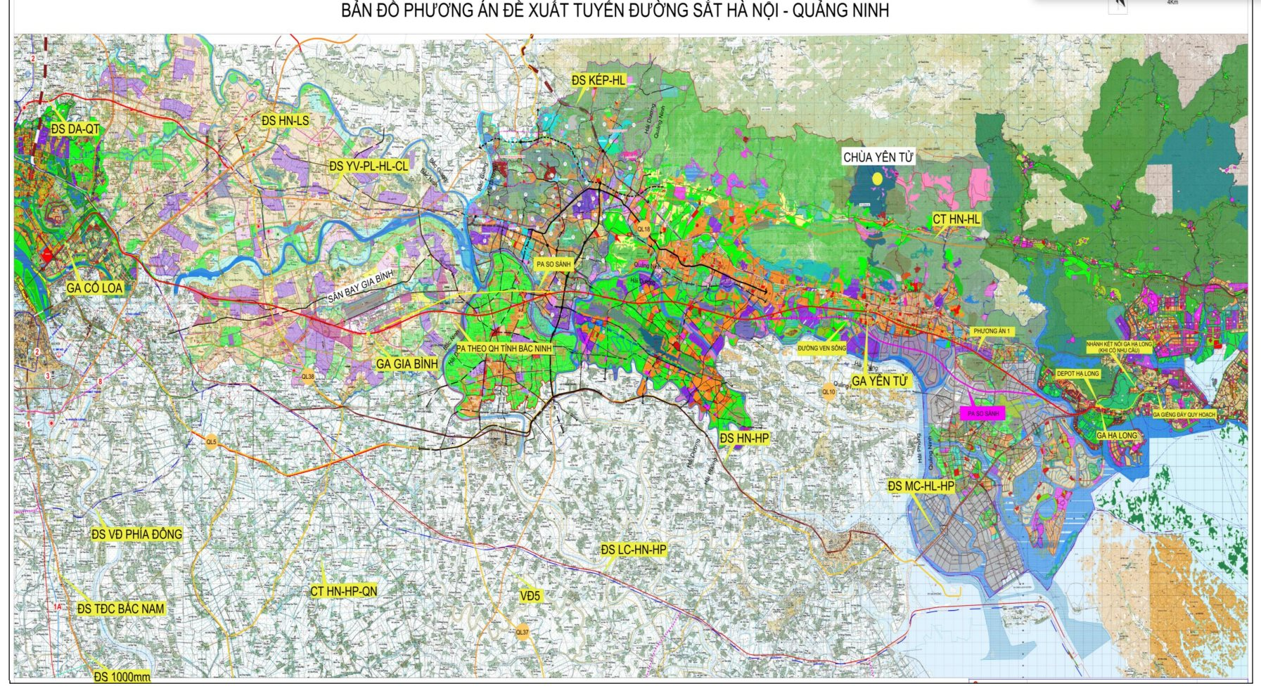 Dự án xây dựng 4 nhà ga trên cao bao gồm (1) Ga Cổ Loa (Km0+000), xã Đông Anh, Hà Nội, diện tích khoảng 1,26 ha; (2) Ga Gia Bình (Km37+700), xã Lương Tài, tỉnh Bắc Ninh, diện tích khoảng 0,91 ha; (3) Ga Yên Tử (Km91+850), diện tích khoảng 0,91 ha; (4) Ga Hạ Long (Km119+500), phường Tuần Châu, tỉnh Quảng Ninh, diện tích khoảng 1,26 ha.