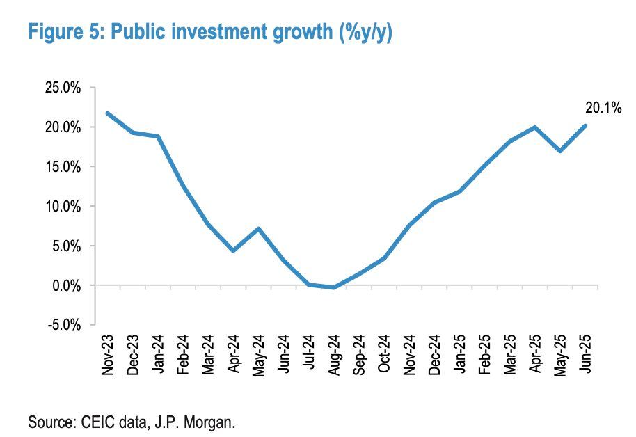 Tiếp đến, Chính phủ Việt Nam có khả năng thúc đẩy tài khóa đáng kể để hỗ trợ tăng trưởng, bất chấp rủi ro bên ngoài. Thực tế, GDP nửa đầu năm tăng trưởng 7,52%, mạnh nhất kể từ năm 2011 với đầu tư công tăng đến 40% trong nửa đầu năm nay so với cùng kỳ 2024, theo Bộ Tài chính. "Đây là điểm khác biệt quan trọng trong ASEAN, vì hầu hết quốc gia khác đều có dư địa tài khóa để hỗ trợ tăng trưởng còn hạn chế", báo cáo nhận định.