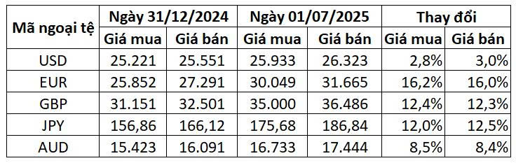 Không chỉ mất giá so với Euro, VND cũng giảm giá mạnh so với nhiều đồng tiền chủ chốt như yên Nhật (12%), bảng Anh (12%), đô la Úc (8,5%),...