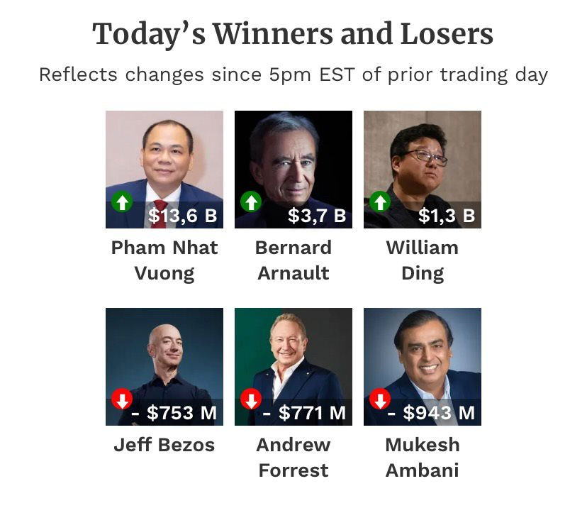 Cùng với đà tăng của VFS, tài sản của tỷ phú Phạm Nhật Vượng theo cập nhật thời gian thực của Forbes cũng đã tăng thêm 13,6 tỷ USD lên 69,4 tỷ USD, tiếp tục là người dẫn đầu danh sách tài sản tăng cao nhất thế giới.