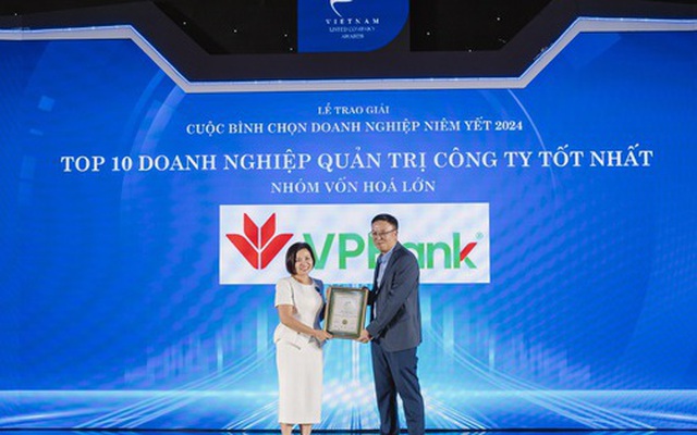 Mới đây, trong khuôn khổ Lễ trao giải cuộc bình chọn Doanh nghiệp Niêm yết 2024 - Hội nghị Doanh nghiệp Niêm yết 2024 do Sở giao dịch Chứng khoán TP. Hồ Chí Minh (HSX) tổ chức tại Đà Lạt, VPBank chính thức được vinh danh trong Top 10 Doanh nghiệp Quản trị công ty tốt nhất - nhóm vốn hóa lớn năm 2024.