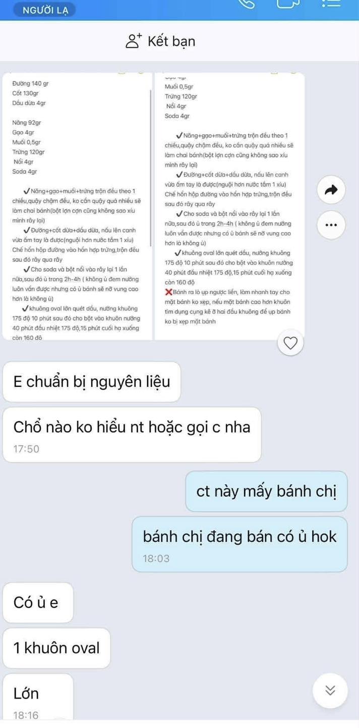 Vụ bán 2 trang công thức làm bánh bò giá 5 triệu, nhắn kèm "chị không muốn em làm giống chị”: Người bị bóc phốt lên tiếng!