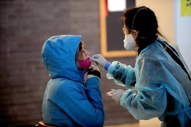 Lấy mẫu xét nghiệm COVID-19 ở Mỹ năm 2020. Ảnh: USA Today.