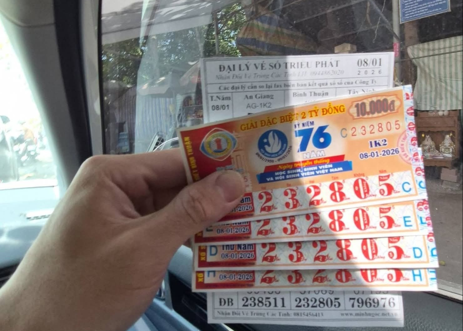 Theo đó, giải độc đắc (dãy số 232805) của vé số Bình Thuận, do Công ty TNHH Một thành viên Xổ số kiến thiết Bình Thuận mở thưởng chiều 8-1, được xác định trúng tại TP Cần Thơ. Nơi bán trúng là đại lý vé số Chấn Nam ở phường Vị Thanh, TP Cần Thơ.
