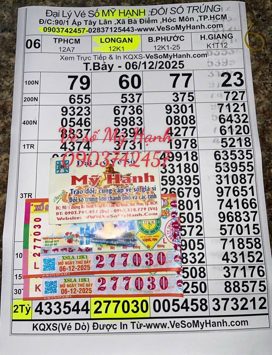 Theo đó, anh Trần Tấn Lê Du – đại diện đại lý vé số Mỹ Hạnh ở xã Bà Điểm, TPHCM – cho biết vừa đổi thưởng trong đêm cho một khách hàng may mắn trúng giải độc đắc (dãy số 277030) 2 tờ vé số Long An, do Công ty TNHH Một thành viên Xổ số kiến thiết Long An mở thưởng chiều 6-12. Khách hàng này nhận qua chuyển khoản 3 tỉ đồng, còn lại nhận tiền mặt.