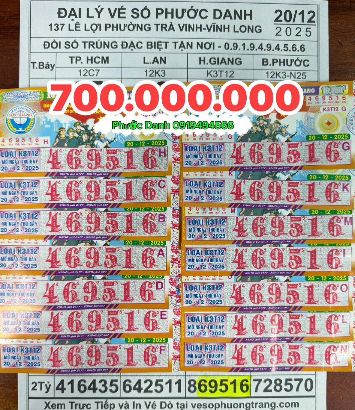 Giải an ủi của vé số Vĩnh Long ngày 20-12 đã tìm ra người trúng, còn giải độc đắc vẫn chưa lộ diện chủ nhân may mắn. Ảnh: ĐLVS Phước Danh