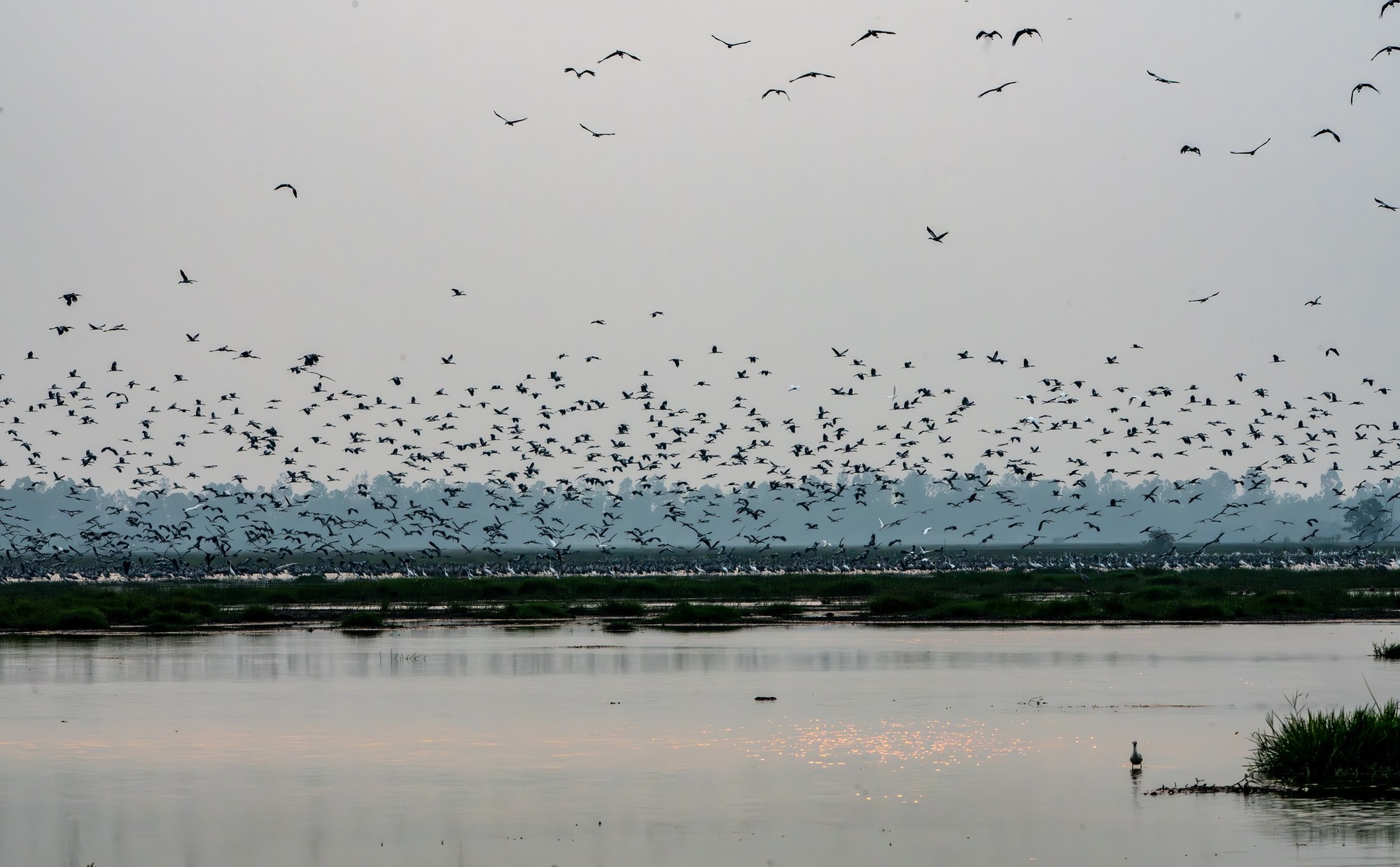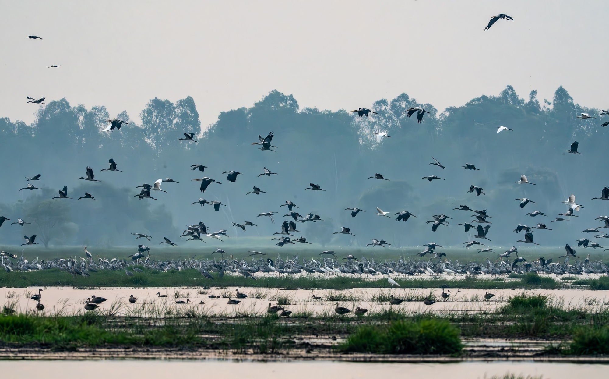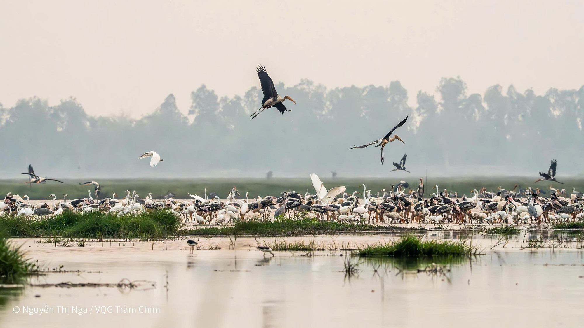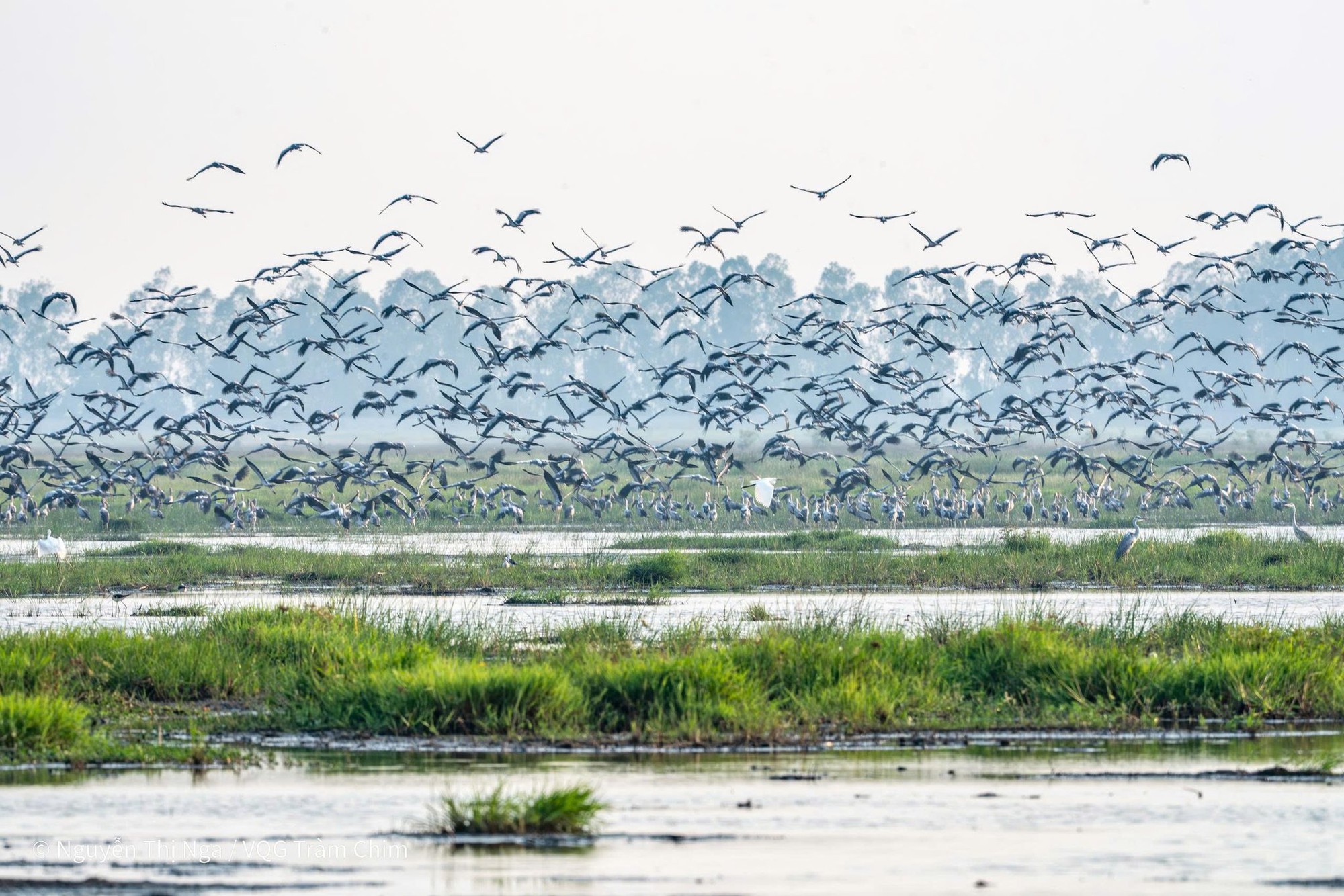 Hình ảnh ngoạn mục khi các chú chim "trở về" Vườn Quốc gia Tràm Chim - Ảnh: Nguyễn Thị Nga, cán bộ khu bảo tồn