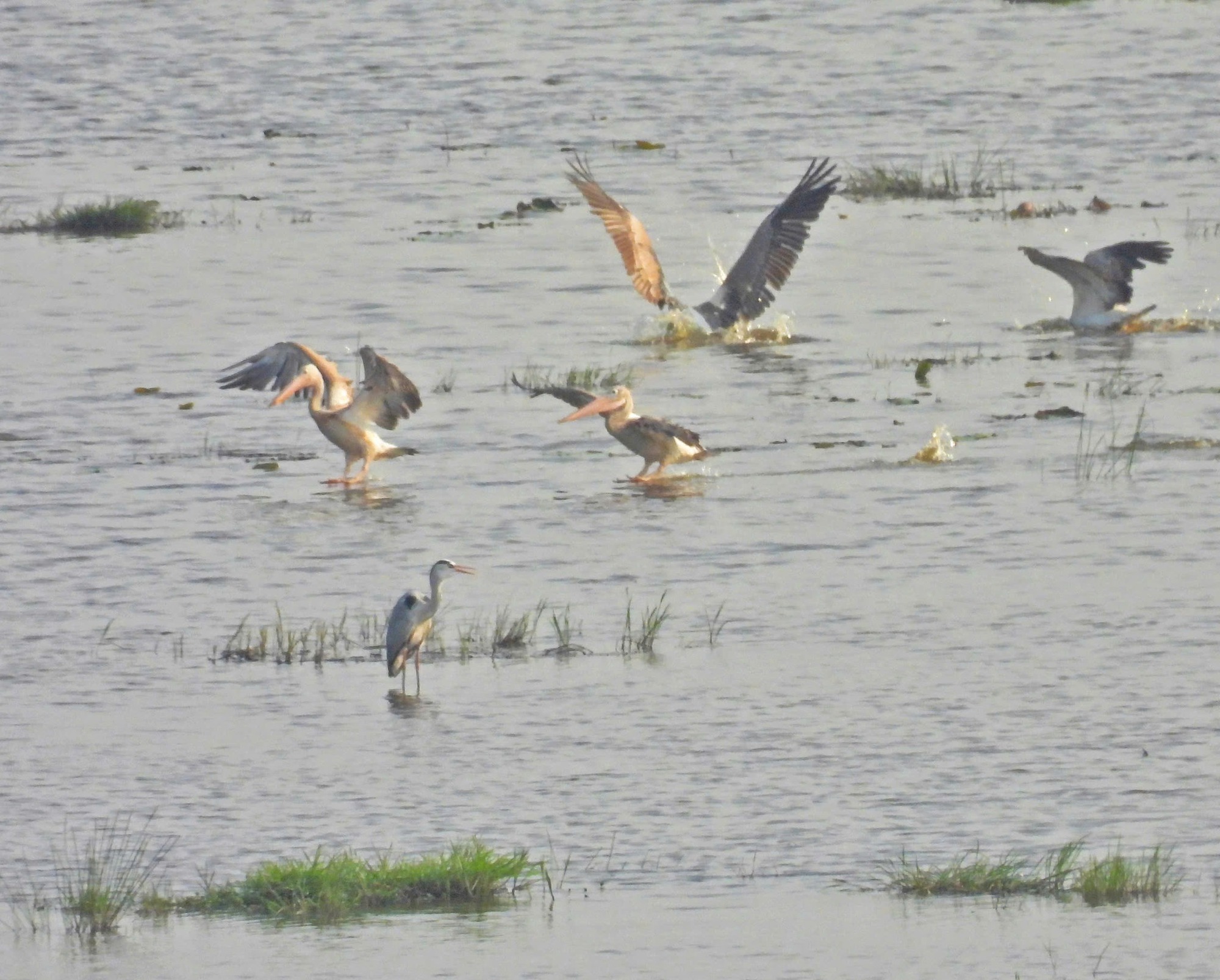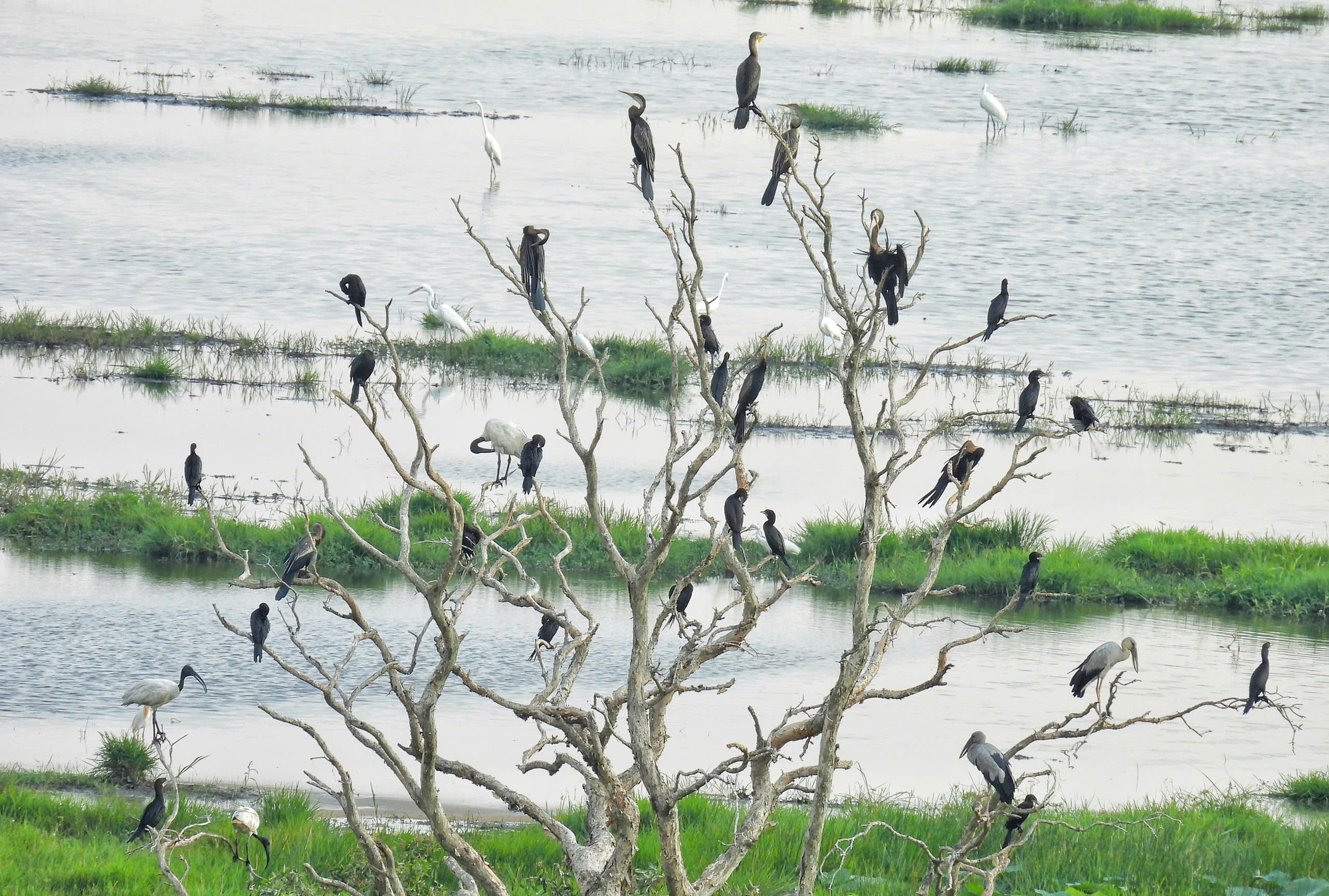 Đàn Bồ Nông Chân Xám (Cấp độ NT) 6 cá thể được ghi nhận tại “cái đầm nước WWF”, nơi Vườn Quốc gia Tràm Chim đã thực hiện cải tạo sinh cảnh với kỳ vọng thu hút chim về - Ảnh: Hồ Phú Quý
