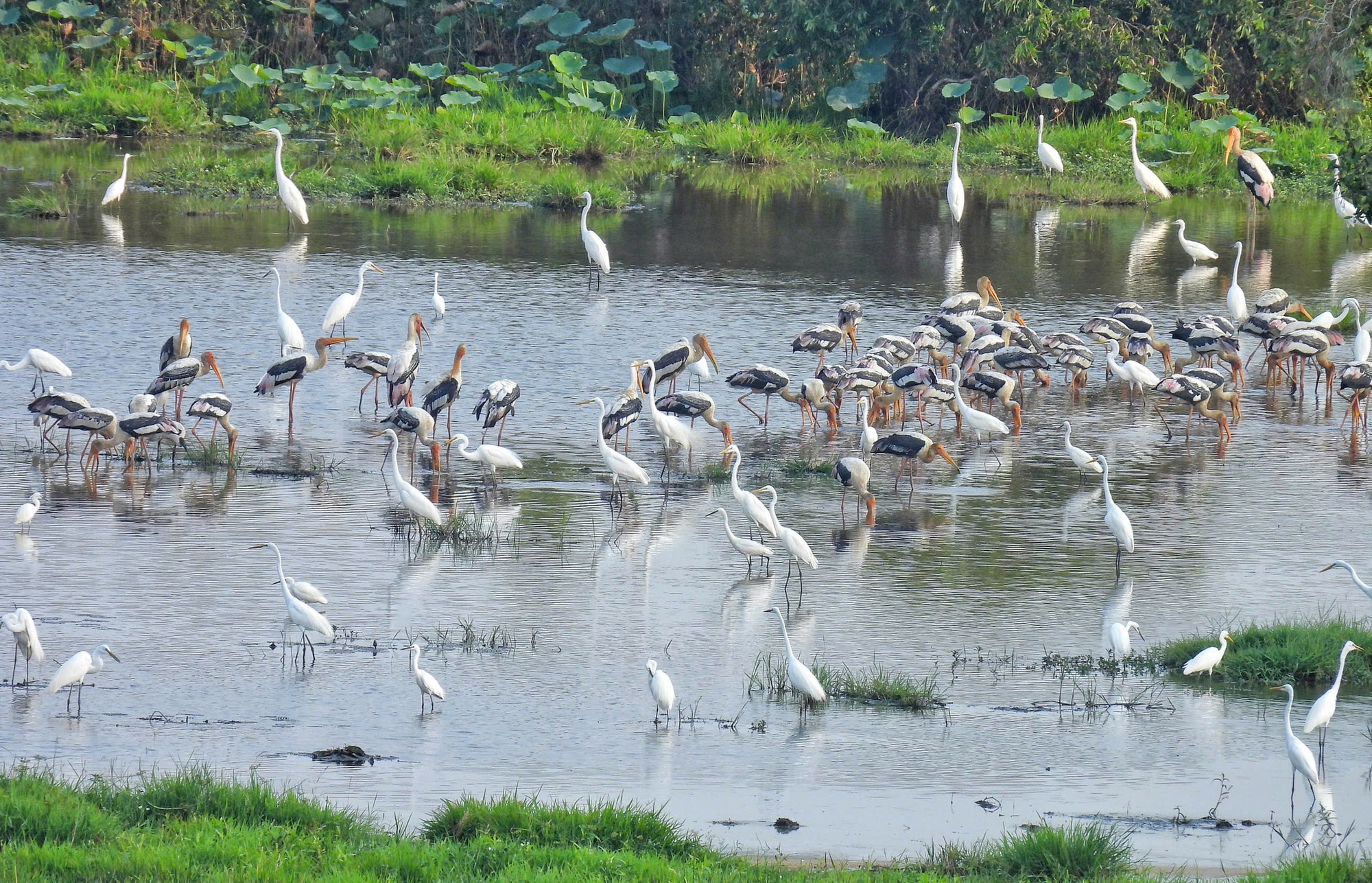 Bên cạnh đó, Vườn Quốc gia Tràm Chim cũng tạo những chiếc ao có độ dốc thoải, đầy ắp tôm cá giúp chim dễ dàng săn mồi, đồng thời đắp gò đất cạn để tạo chỗ nghỉ ngơi, giúp chim thong dong tắm nắng và quan sát kẻ thù. Nhờ vậy, nơi đây thu hút ngày càng nhiều các loài chim di cư.