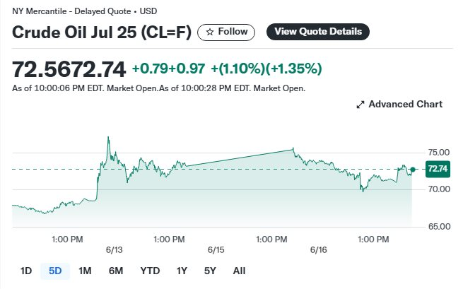 Đầu tuần, tờ Wall Street Journal đưa tin căng thẳng giữa Iran và Israel đã hạ nhiệt. Thị trường chứng khoán Mỹ hồi phục và giá dầu thô ổn định quanh mốc 70 USD/thùng. Trước đó, giá dầu tăng cao nhất 3 năm.
