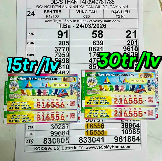 Cụ thể những tờ vé cùng trúng xổ số Vũng Tàu ngày 24/3. Những tờ vé trúng giải nhất có dãy số cuối may mắn 16555. Trong khi đó, 2 vé trúng giải nhì lại có dãy số 16556.