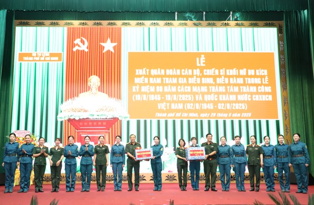 Chiều 29/5, Bộ Tư lệnh TPHCM tổ chức Lễ xuất quân đoàn cán bộ, chiến sĩ khối Nữ du kích miền Nam tham gia diễu binh, diễu hành trong Lễ kỷ niệm 80 năm Cách mạng tháng Tám thành công (19/8/1945 – 19/8/2025) và Quốc khánh nước Cộng hòa xã hội chủ nghĩa Việt Nam (2/9/1945 – 2/9/2025).