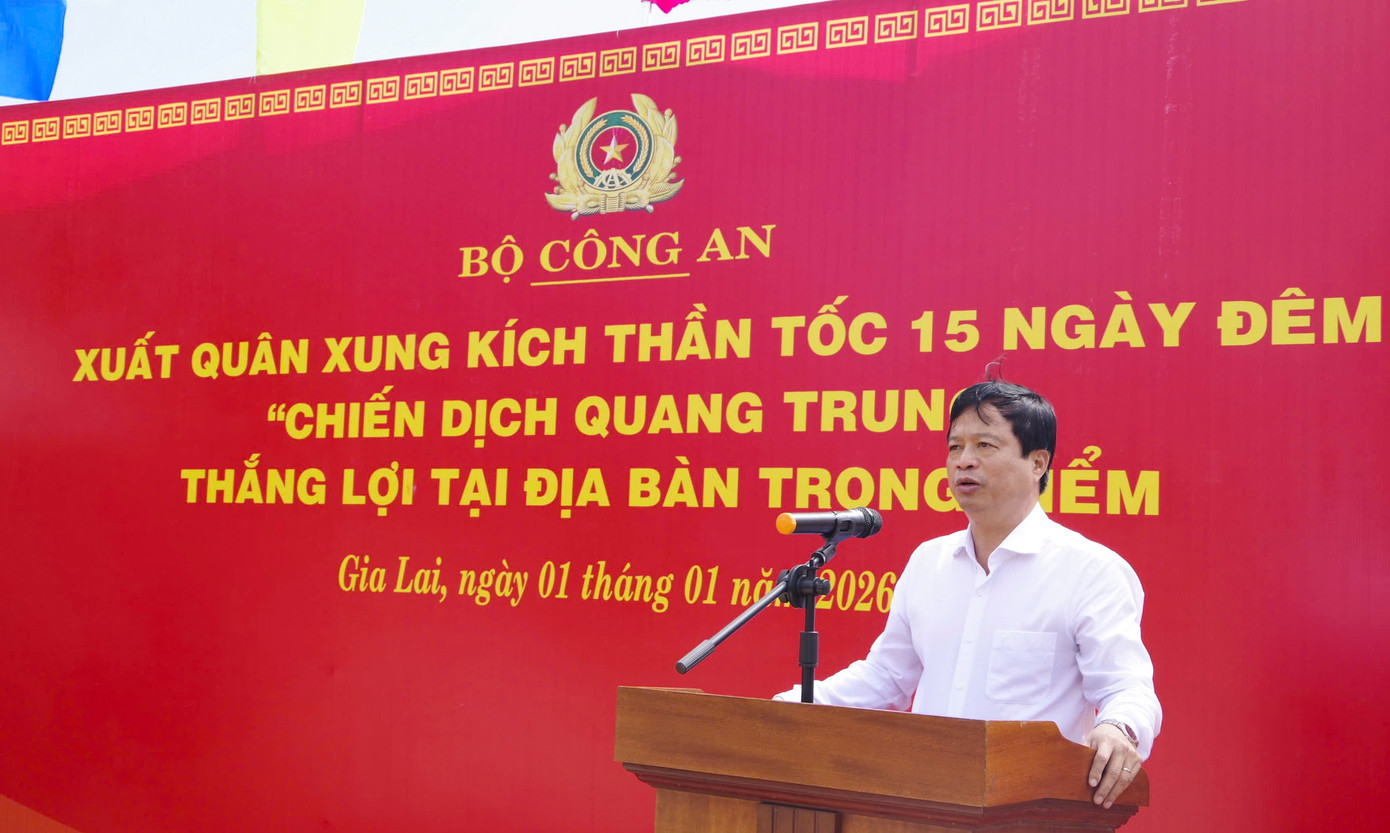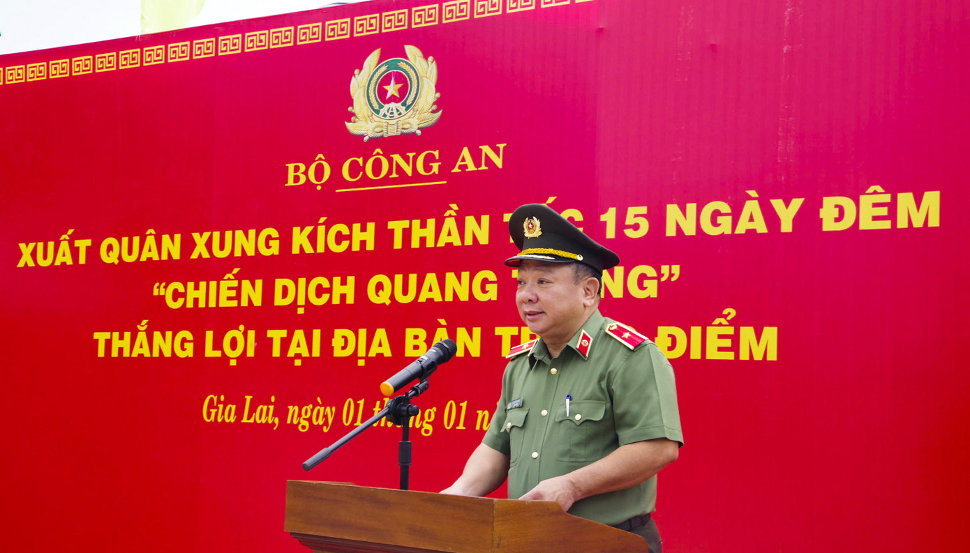 Phó Chủ tịch Thường trực UBND tỉnh Gia Lai Nguyễn Tuấn Thanh cũng trân trọng cảm ơn sự quan tâm của Chính phủ, sự phối hợp, hỗ trợ thiết thực của Bộ Công an và cam kết đưa chiến dịch đạt kết quả cao nhất.
