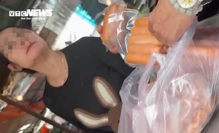 Khi được chỉ vào gói xúc xích để trên mặt bàn không tem mác, người phụ nữ này giải thích: “Đây là người ta vật nài người ta mua về ăn, chị mới bán. Xúc xích nhà chị xúc xích ngon, hàng giò người ta làm có phải chị làm đâu. Chị có bảo chị bán xúc xích đâu, xúc xích chợ ở kia rẻ, xúc xích này xúc xích ngon, chị bảo xúc xích chị mang về ăn, em bảo mua thì chị bán, chị có làm nhiều đâu”.